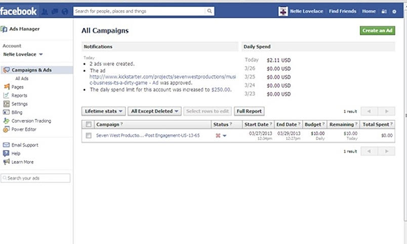 I purchased a couple Ads’ from Facebook and this is a copy of the Ads tracking where they stopped all activity at $2.11.